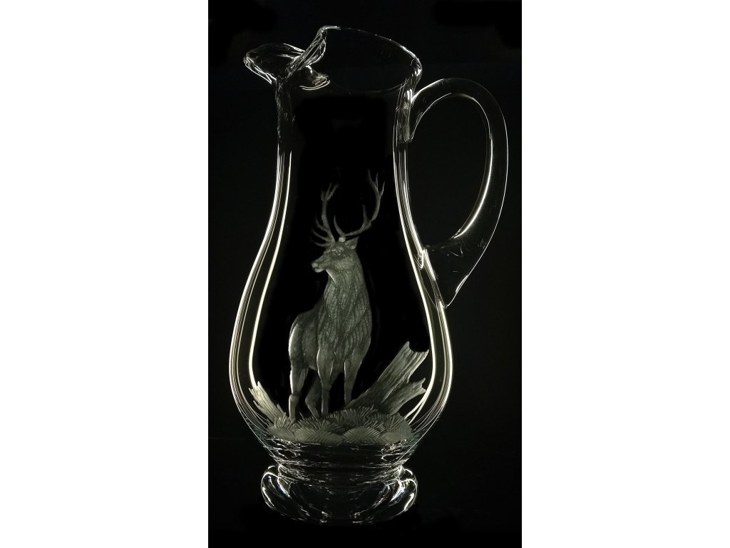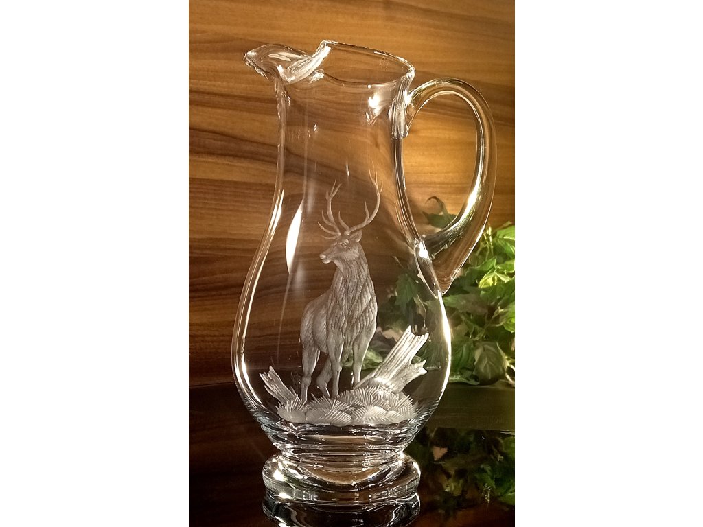džbán 1,5l s rytinou jelena - ručně ryté (broušené), dárek pro myslivce
