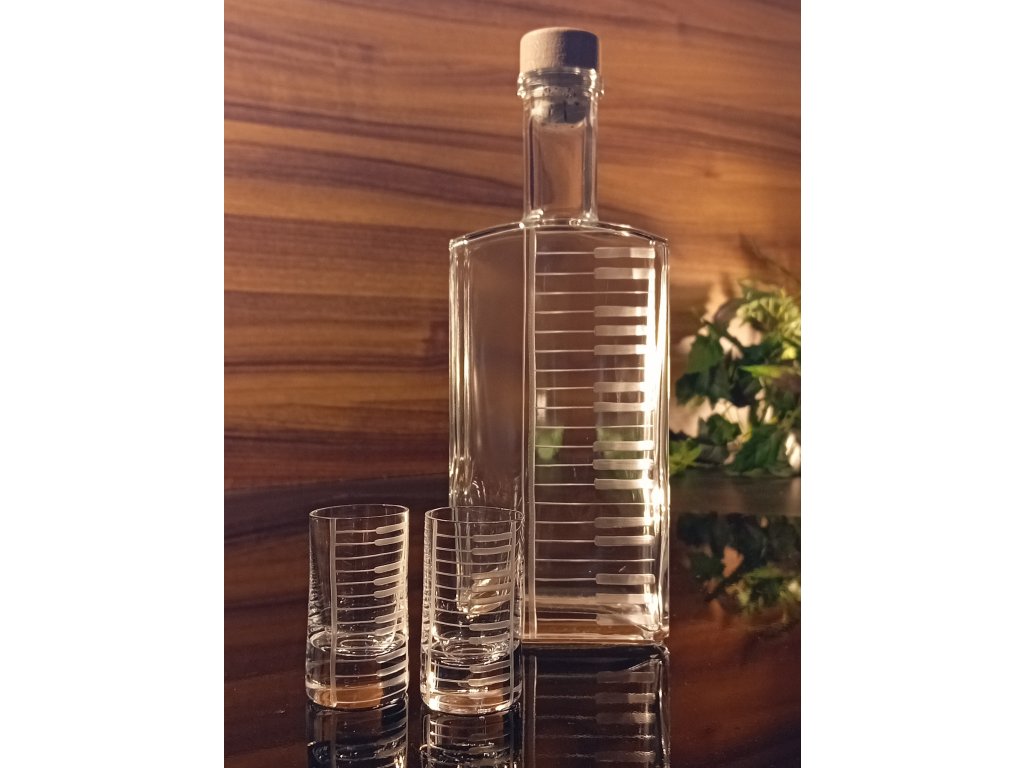 lahev na kořalku 0,5l + 2ks sklenek na likér