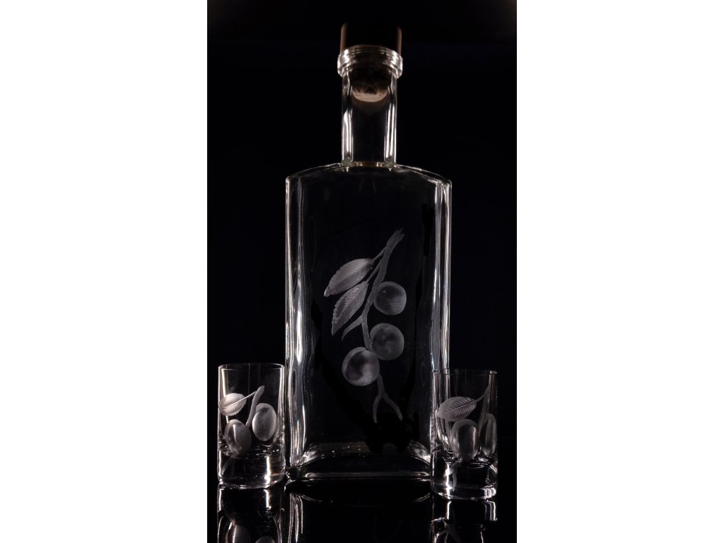 lahev na meruňkovici 0,5l a 2ks liker - ručně ryté (broušené), dárková krabička