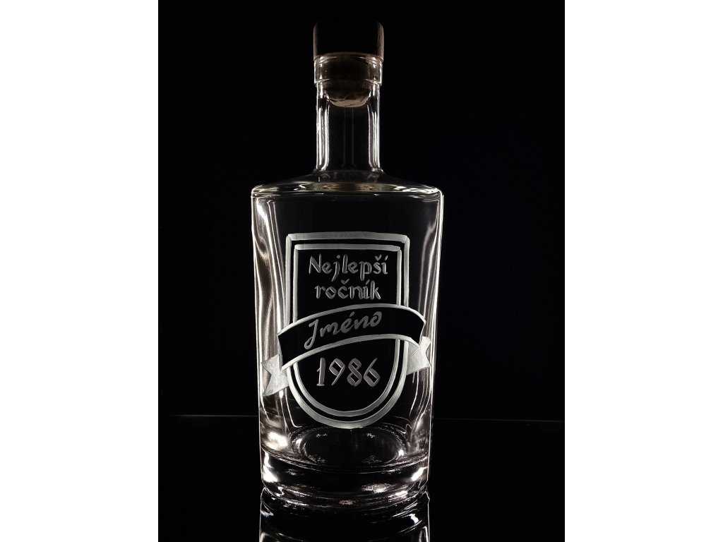 Lahev na slivovici 0,7l, nejlepší ročník 1986 s vlastním jménem - ručně ryté (broušené), dárková krabička, možnost jména na přání