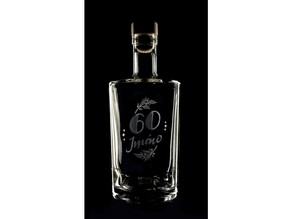 Lahev na slivovici 0,7l k 60 narozeninám s vlastním jménem - ručně ryté (broušené), dárková krabička, možnost jména na přání