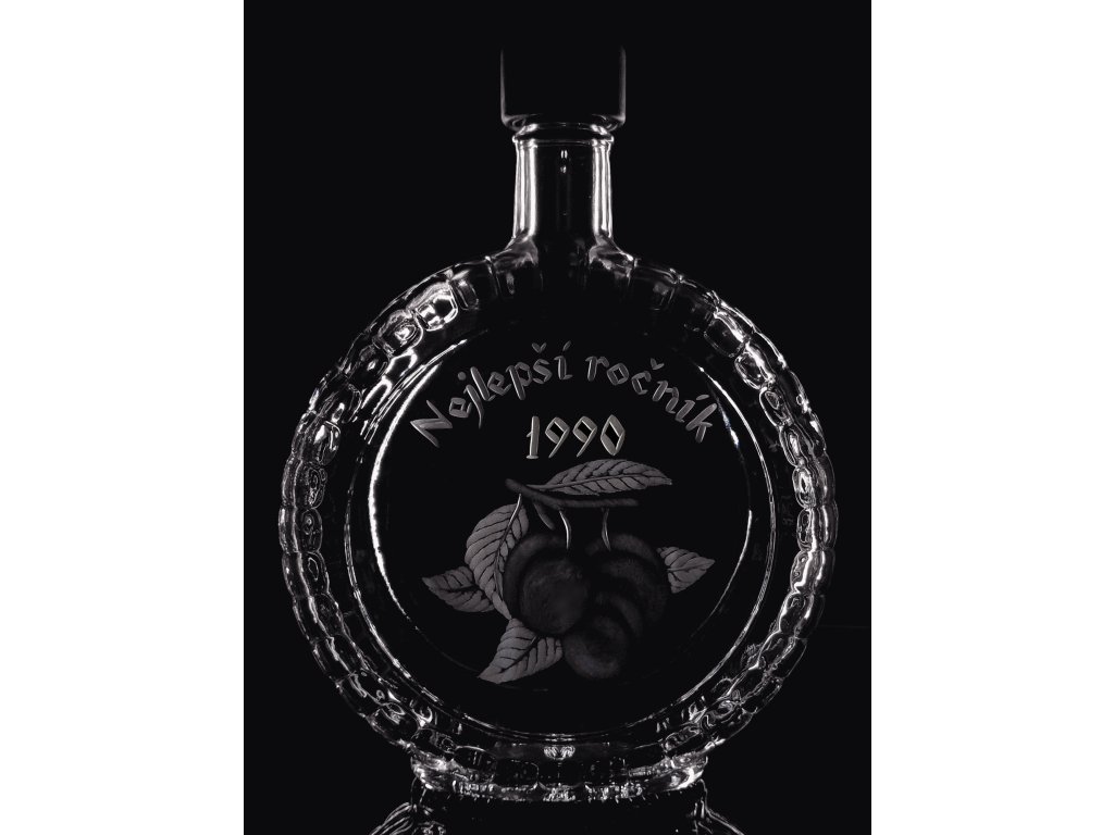 Lahev na slivovici 0,7l nejlepší ročník 1990 - ručně ryté (broušené), dárková krabička, možnost jména na přání