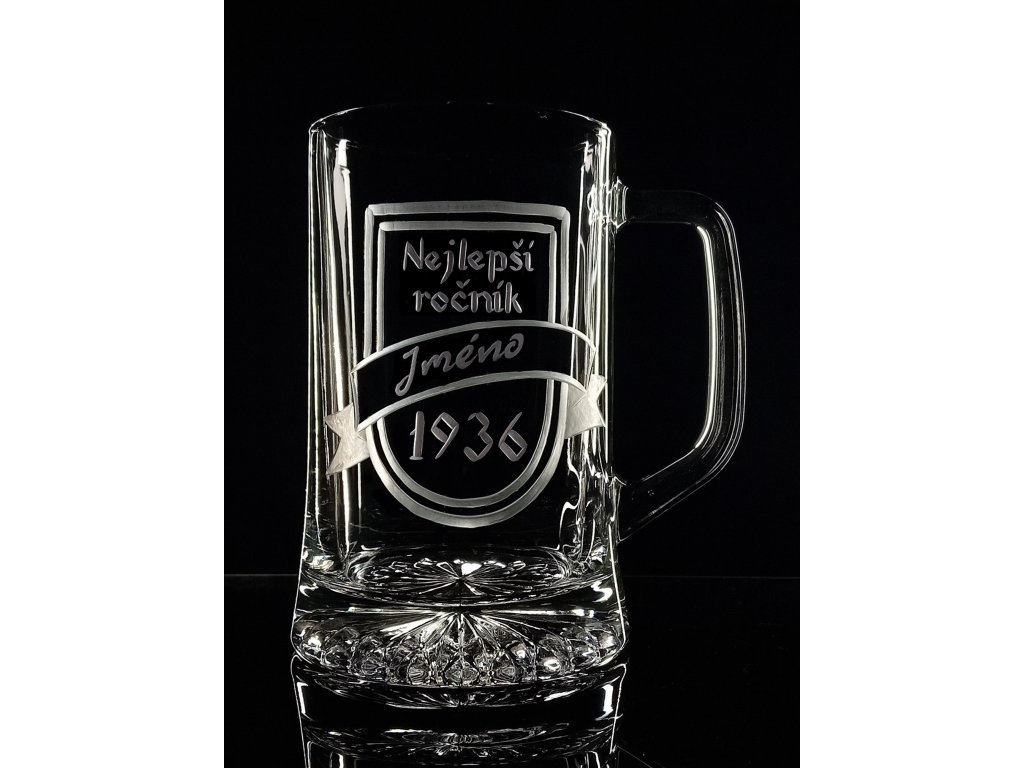 Půllitr nejlepší ročník 1936, s vlastním jménem - ručně ryté (broušené)