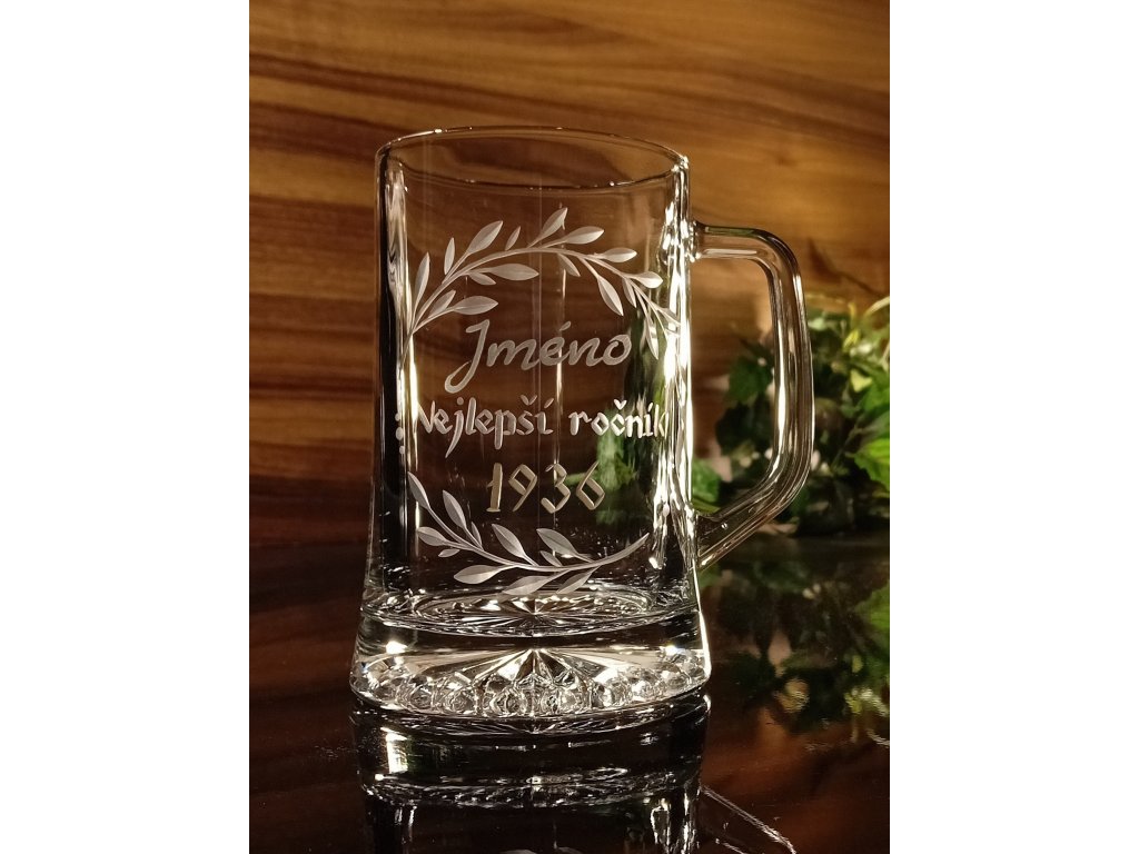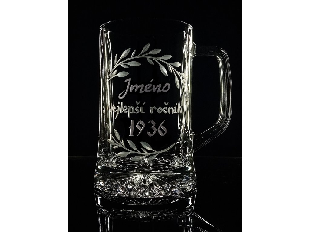 Půllitr nejlepší ročník 1936 s vlastním jménem - ručně ryté (broušené)
