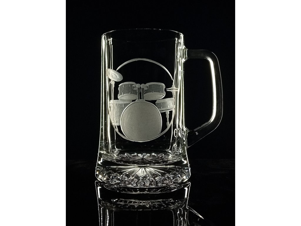 půllitr s bubny - ručně ryté (broušené) dárek pro hudebníka