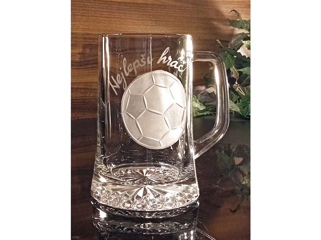půllitr s fotbalovým míčem - ručně ryté (broušené) dárek pro fotbalistu