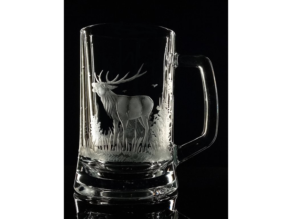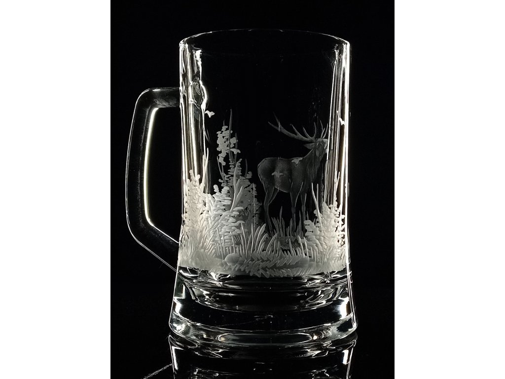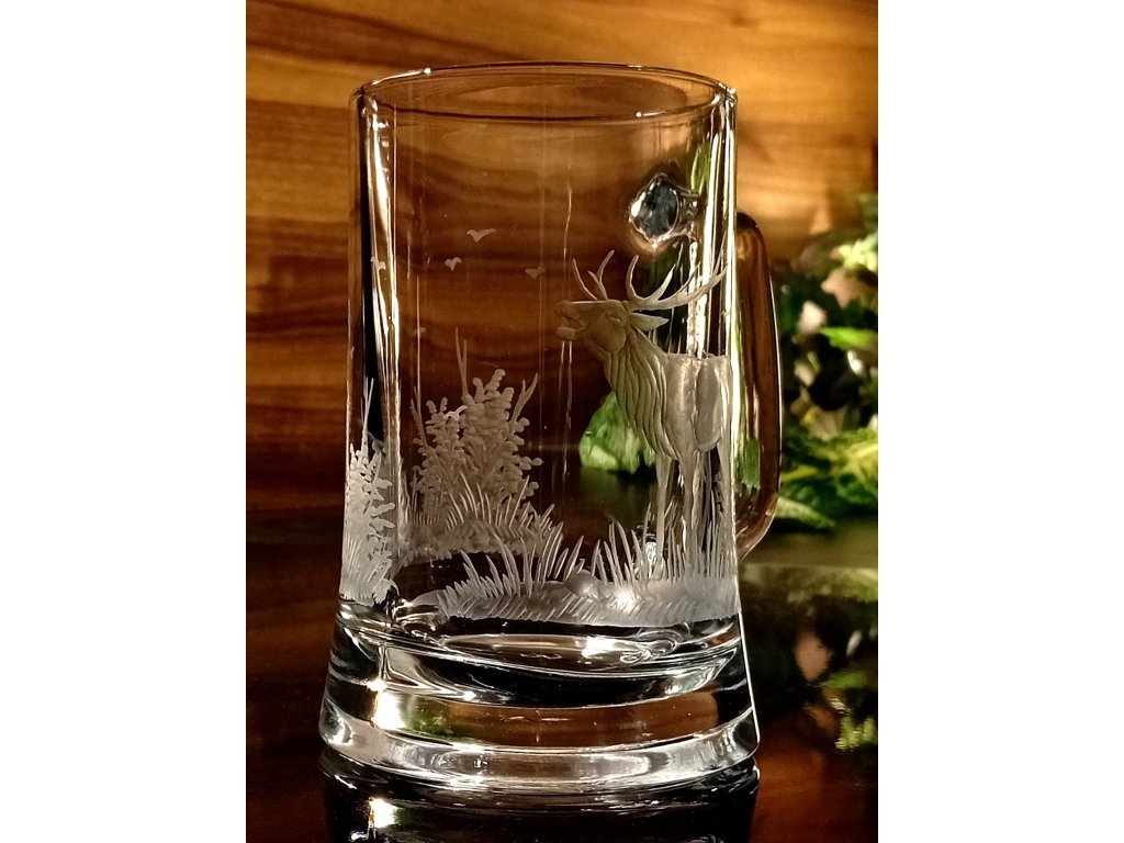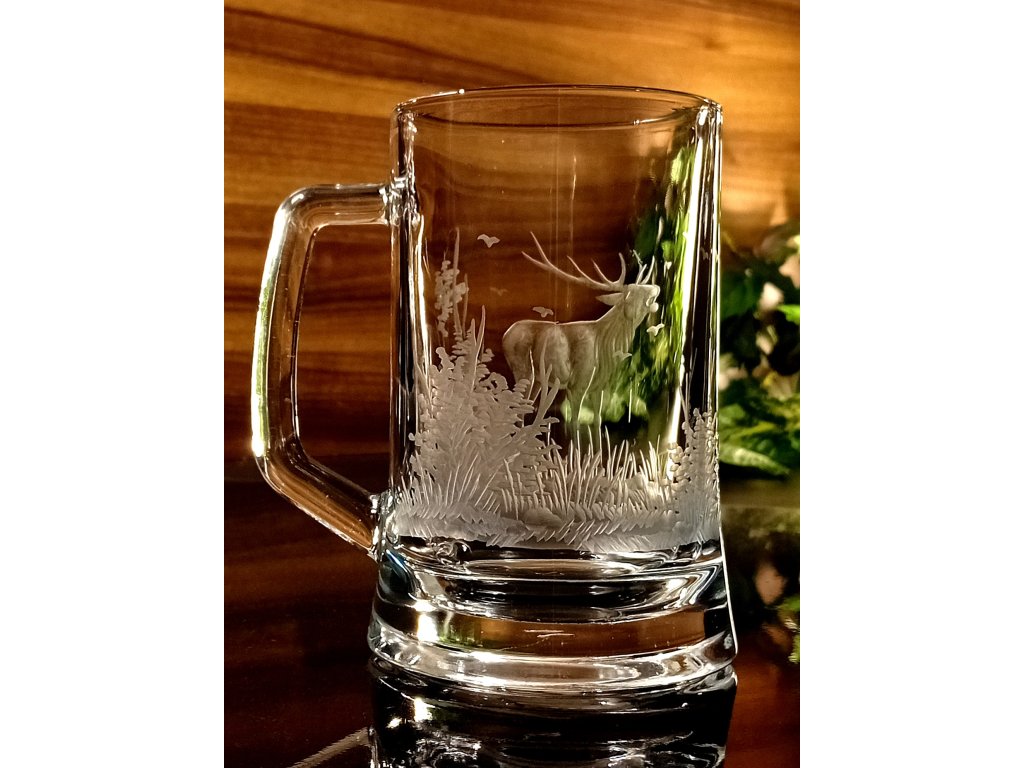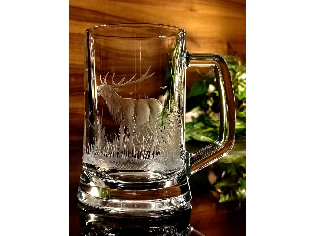 půllitr s jelenem - ručně ryté (broušené), dárek pro myslivce