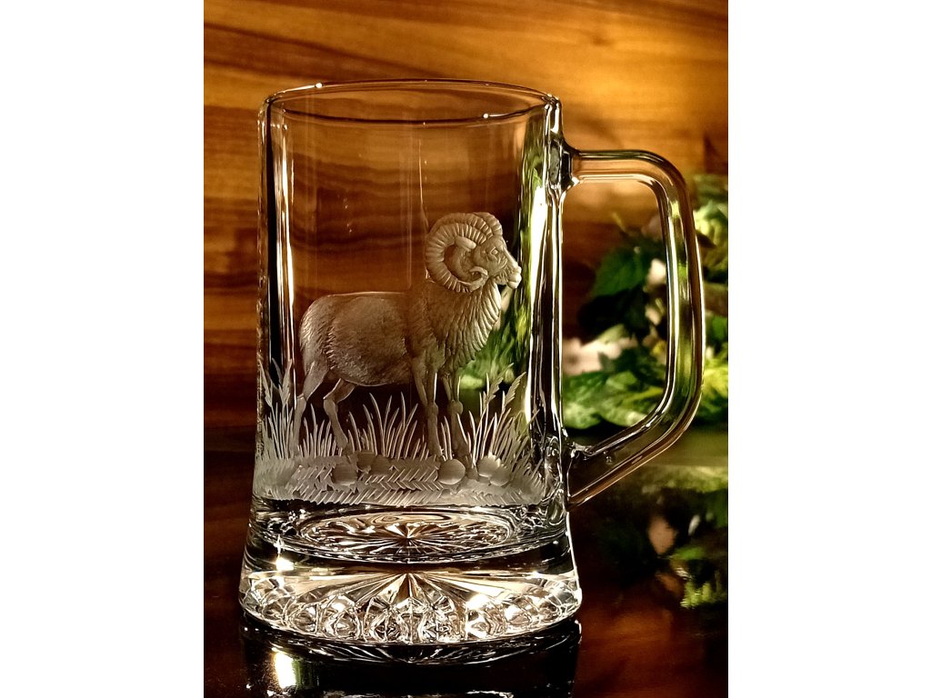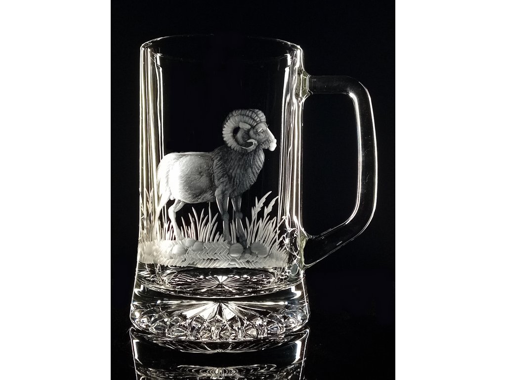 půllitr s muflonem - ručně ryté (broušené), dárek pro myslivce