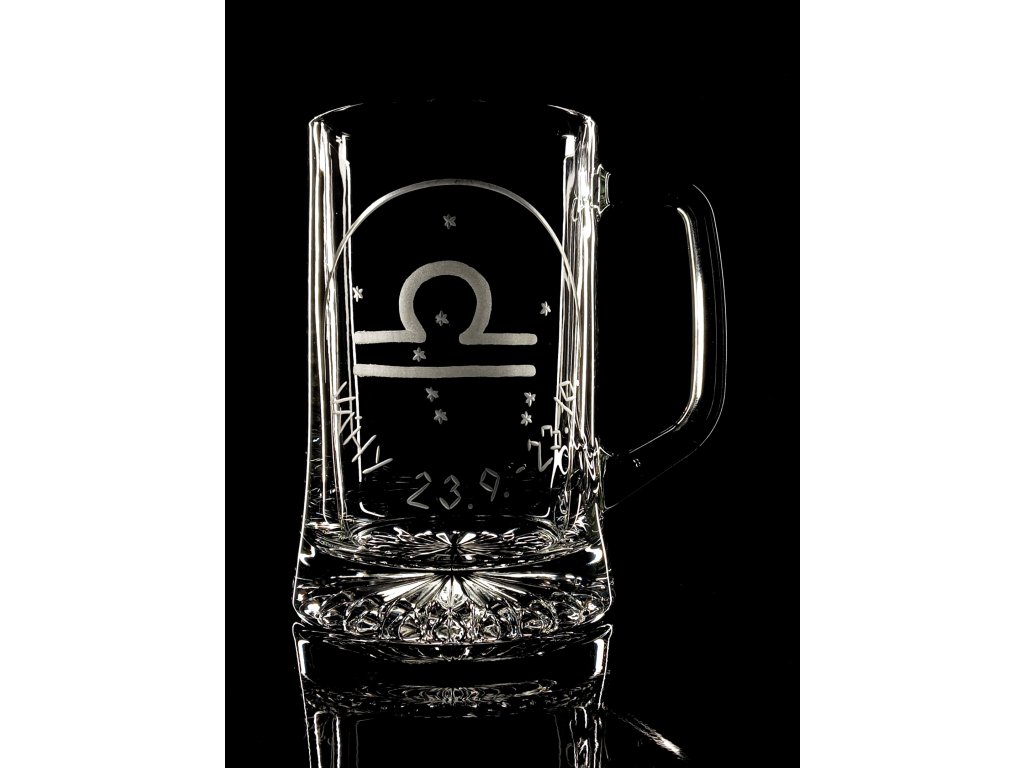 Půllitr s uchem, znamení Váhy 23.9.-23.10. - ručně ryté (broušené)
