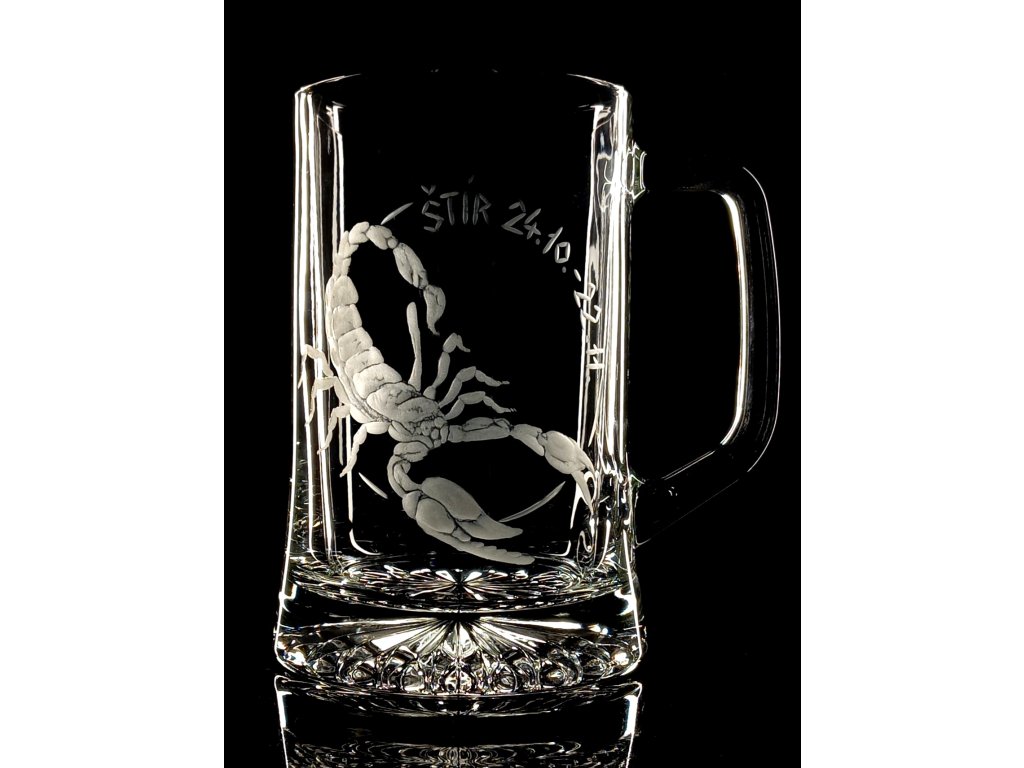 Půllitr s uchem, znamení Štír - ručně ryté (broušené)