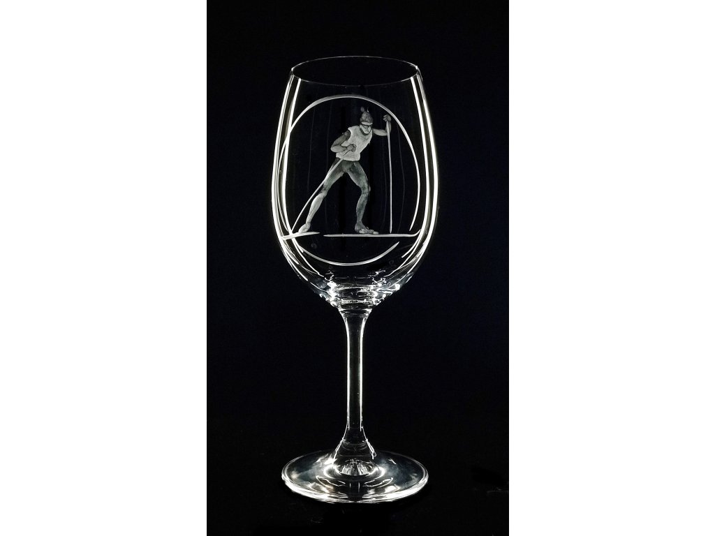 sklenice 1ks na víno Lara 450ml s lyžařem (běh na lyžích) - ručně ryté (broušené) dárková krabička
