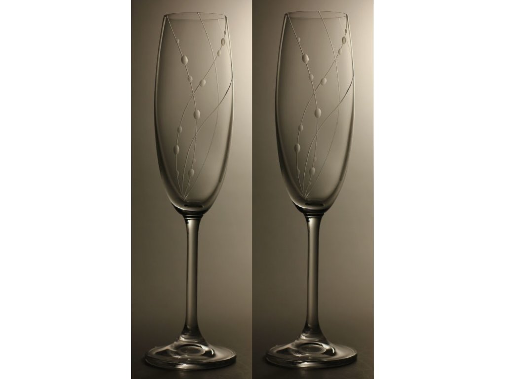 sklenice na šampus 2ks lara 220ml s rytinou korale - ručně ryté (broušené), dárková krabička