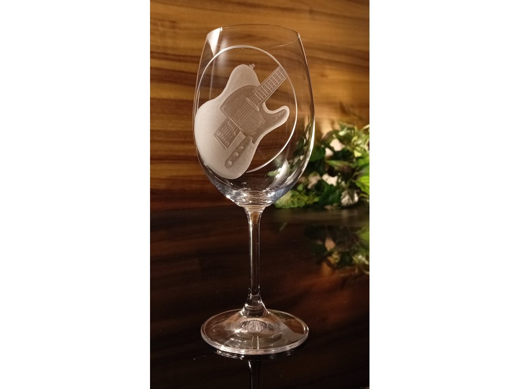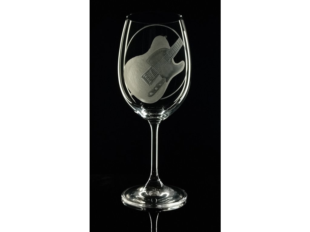 Sklenice na víno 450ml s el. kytarou Telecaster - ručně ryté (broušené) dárková krabička, dárek pro hudebníka