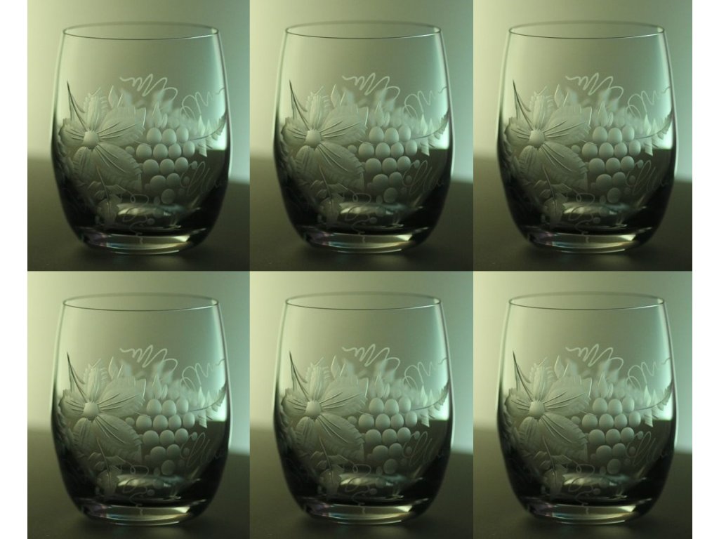 sklenice na víno 6ks club 300ml s rytinou hrozen vína - ručně ryté (broušené)